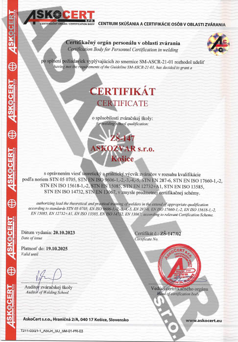• CERTIFIKÁCIA ZVÁRACIEHO PERSONÁLU