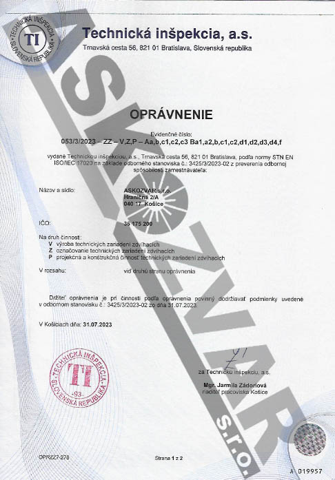 Asdresa: ASKOZVAR s.r.o. Hraničná 2 , 040 17 Košice – Barca