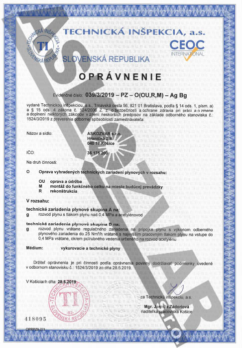 Asdresa: ASKOZVAR s.r.o. Hraničná 2 , 040 17 Košice – Barca